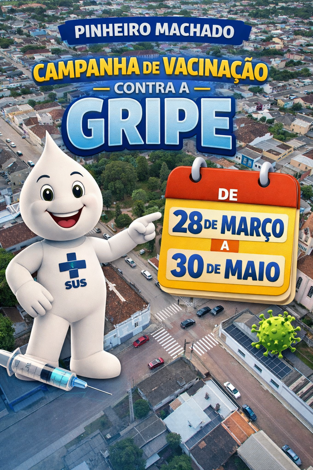 A Prefeitura de Pinheiro Machado, por meio da Secretaria Municipal de Saúde, inicia neste sábado, dia 28 de março, a Campanha de Vacinação contra a Influenza 2026.